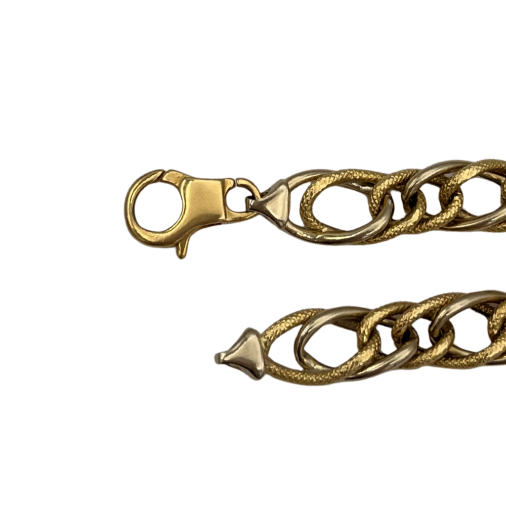 Vintage Italian 18k Yellow Gold Hollow Link Alternating Texture Bracelet