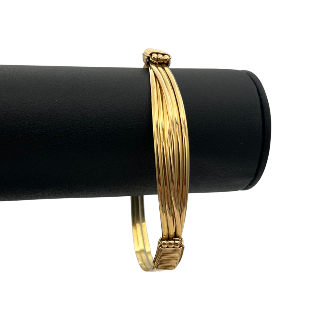 A beautiful hand crafted 18k gold bracelet with lovely sliders to adjust the bracelet to fit.