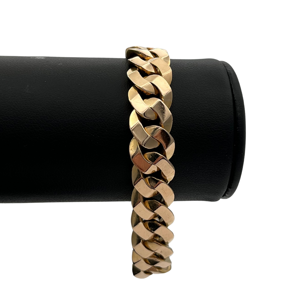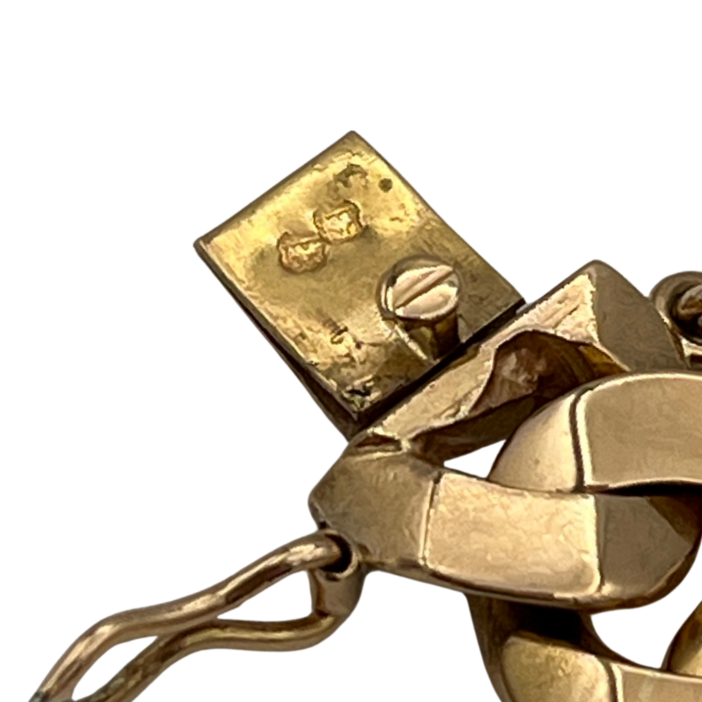 Vintage French 18k Rose 11.0mm Gold Round Curb Link Chain Bracelet