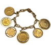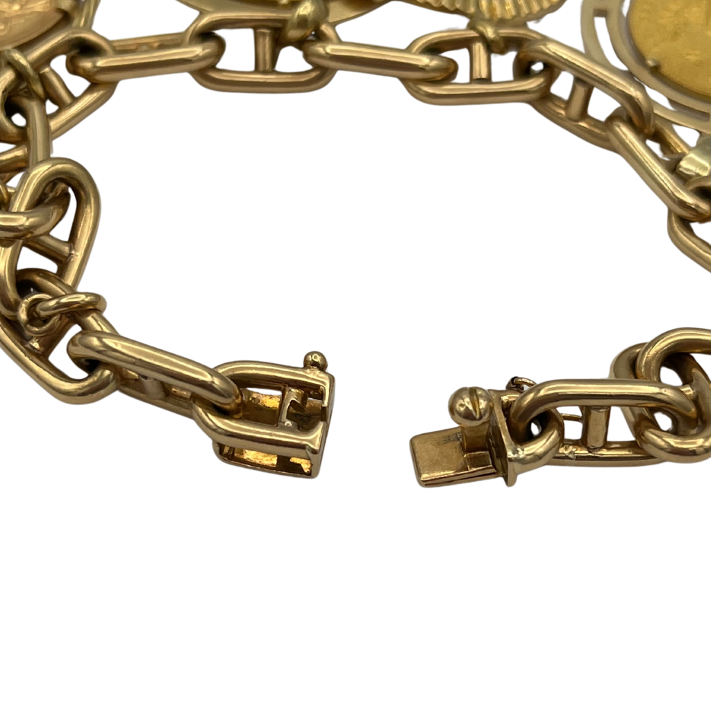 Vintage Multi-Coin 18k Yellow Gold Anchor Chain Charm Bracelet