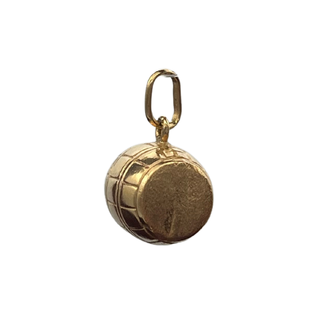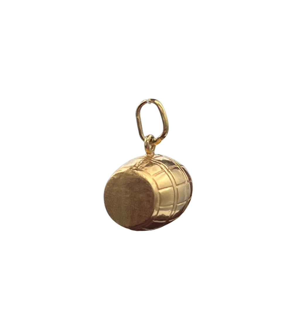 Vintage hollow 18k yellow gold whiskey barrel charm.