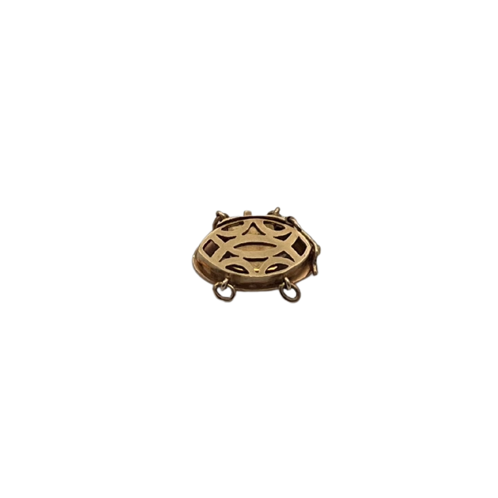 Vintage oval 14k rose gold bracelet or necklace push clasp. Front features a Brush finish. Currently the clasp has loops for a 2-strand bracelet or necklace, however, additional loops can be added. Clasp has one figure eight safety lock.