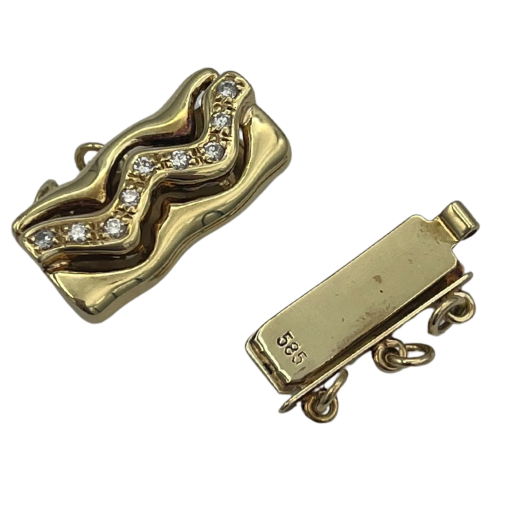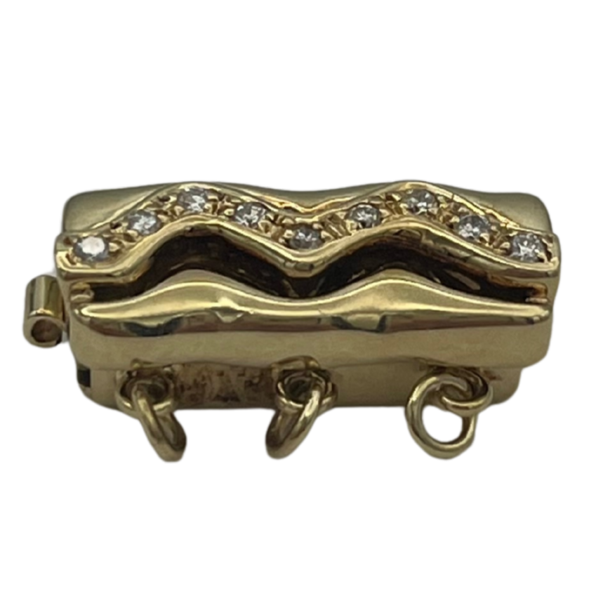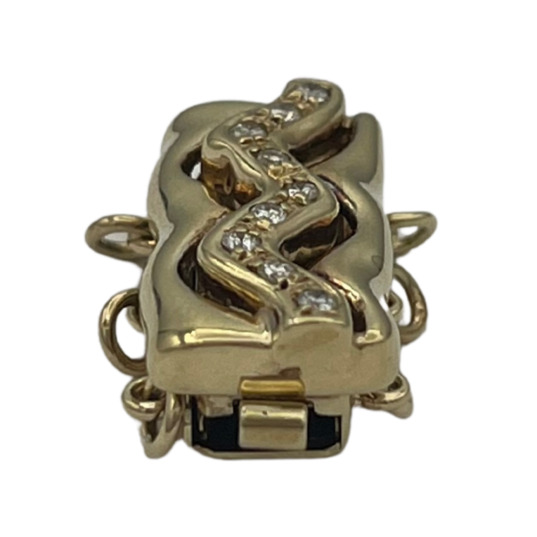 Vintage 14k yellow gold high-polish push clasp with pavé diamonds in a 'zig-zag' design. Comes with two spacers.