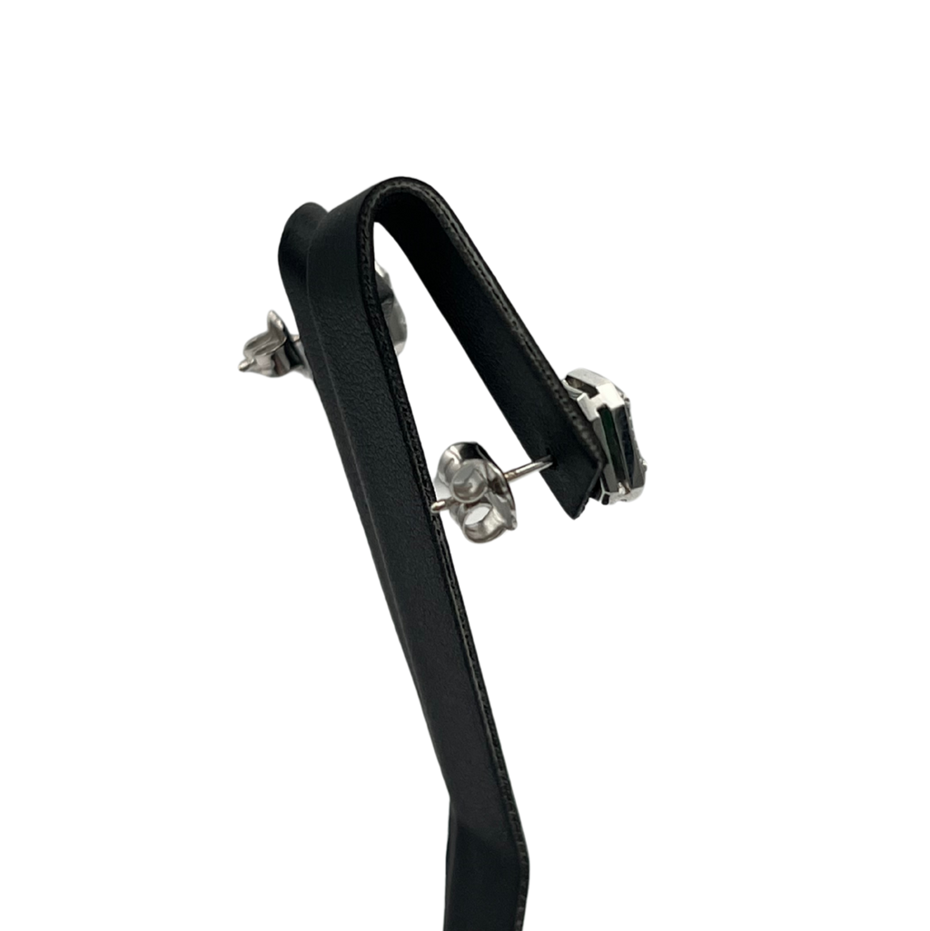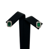 Emeralds: Two (2) prong set, vivid green emerald cut emeralds measuring approximately 4.0 x 6.0 mm each with an estimated total emerald weight of 0.87ct.