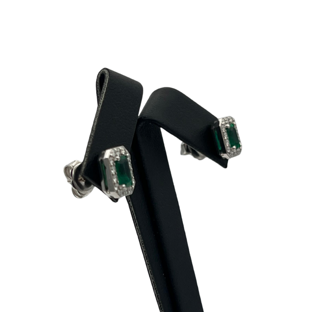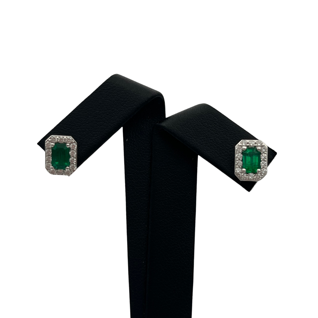 Daisy Exclusive 0.87ct Zambian Emerald and Diamond Halo 18k White Gold Earrings