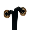 Vintage 14k yellow gold and pavé diamond dome earrings with an elegant ridged scroll motif. Earrings are worn with a post and omega clip mechanism.
