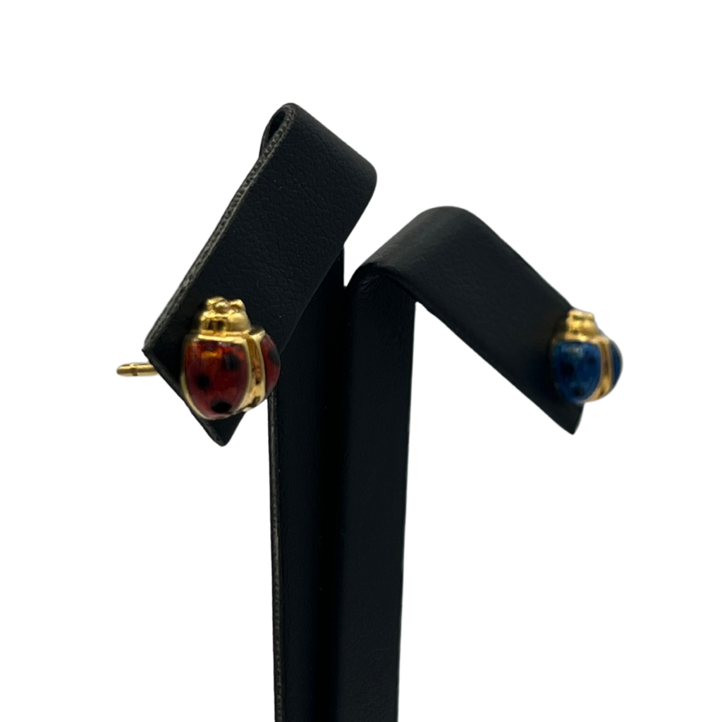 Vintage Red and Blue Enamel Ladybug Stud Earrings in 18k Yellow Gold
