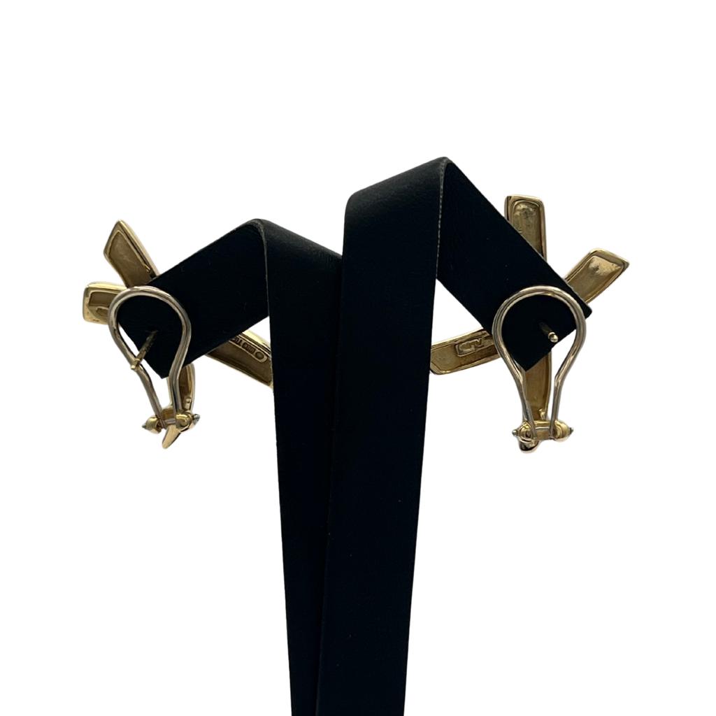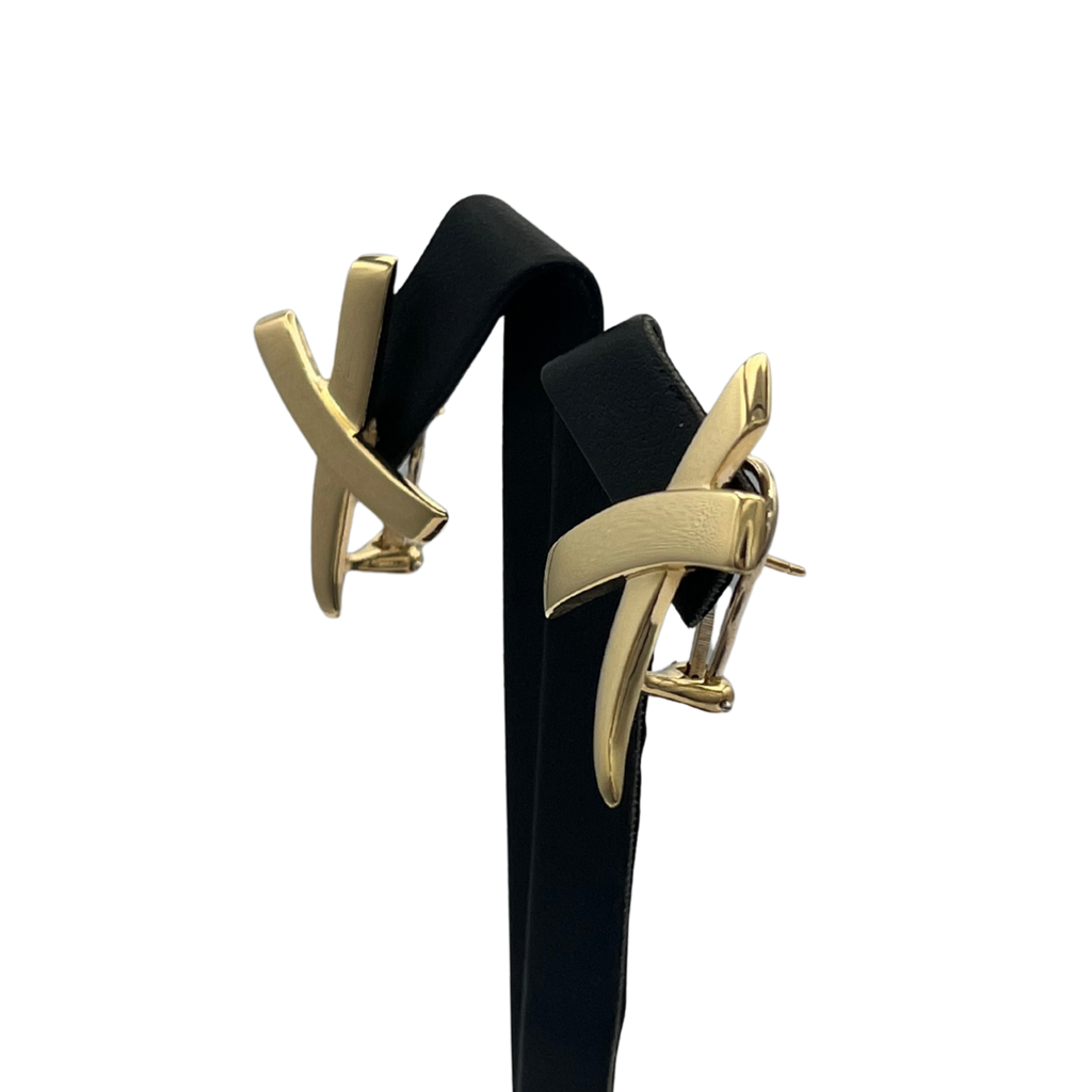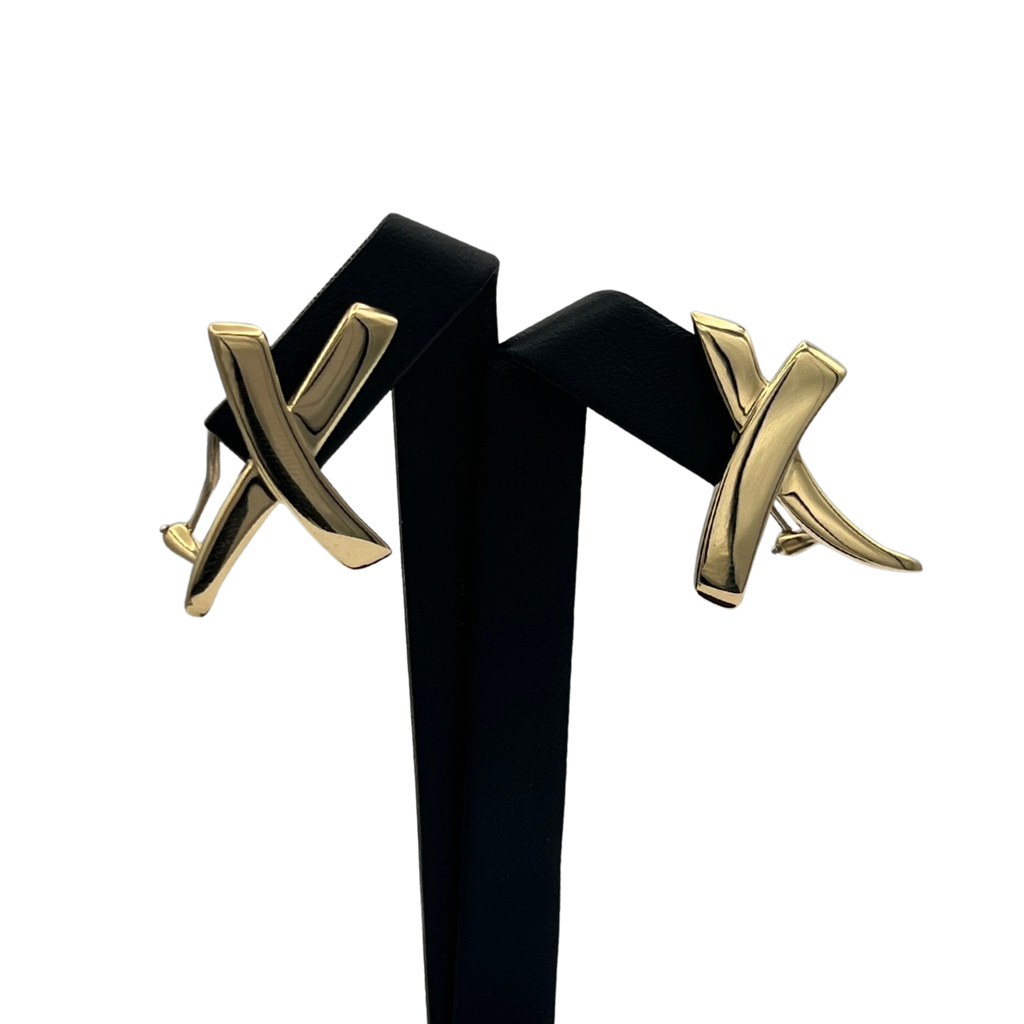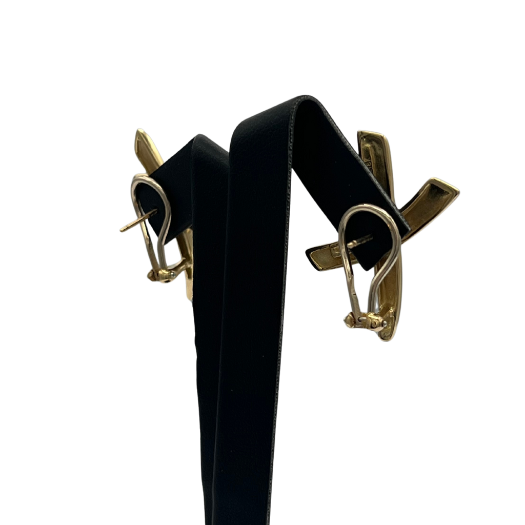 Vintage Tiffany & Co. earrings from Paloma Picasso's "X" collection in 18k yellow gold dating to 1983. Earrings are worn with an omega post mechanism.