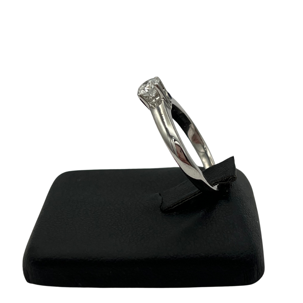 Diamond: One (1) prong set, round brilliant cut diamond measuring approximately 4.5mm in diameter. The estimated clarity is VVS1-2 and the estimated colour is E-F (set). The total diamond weight is 0.34ct.