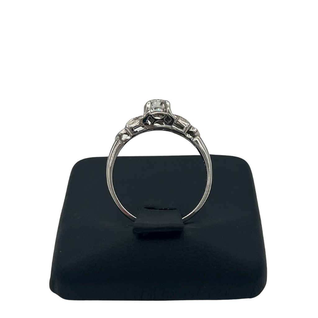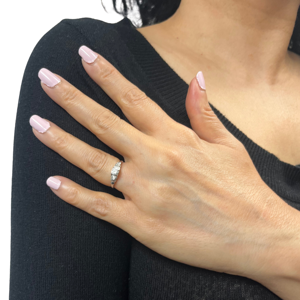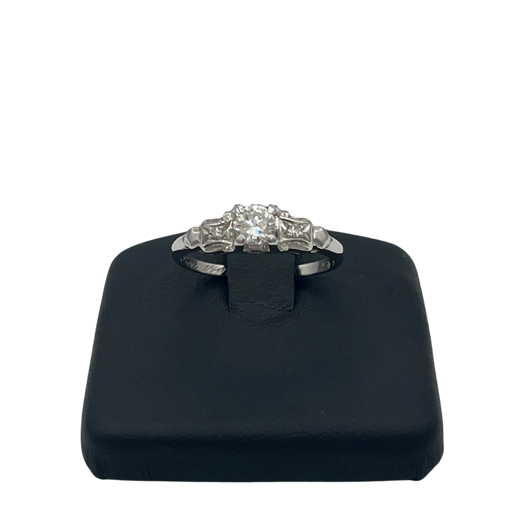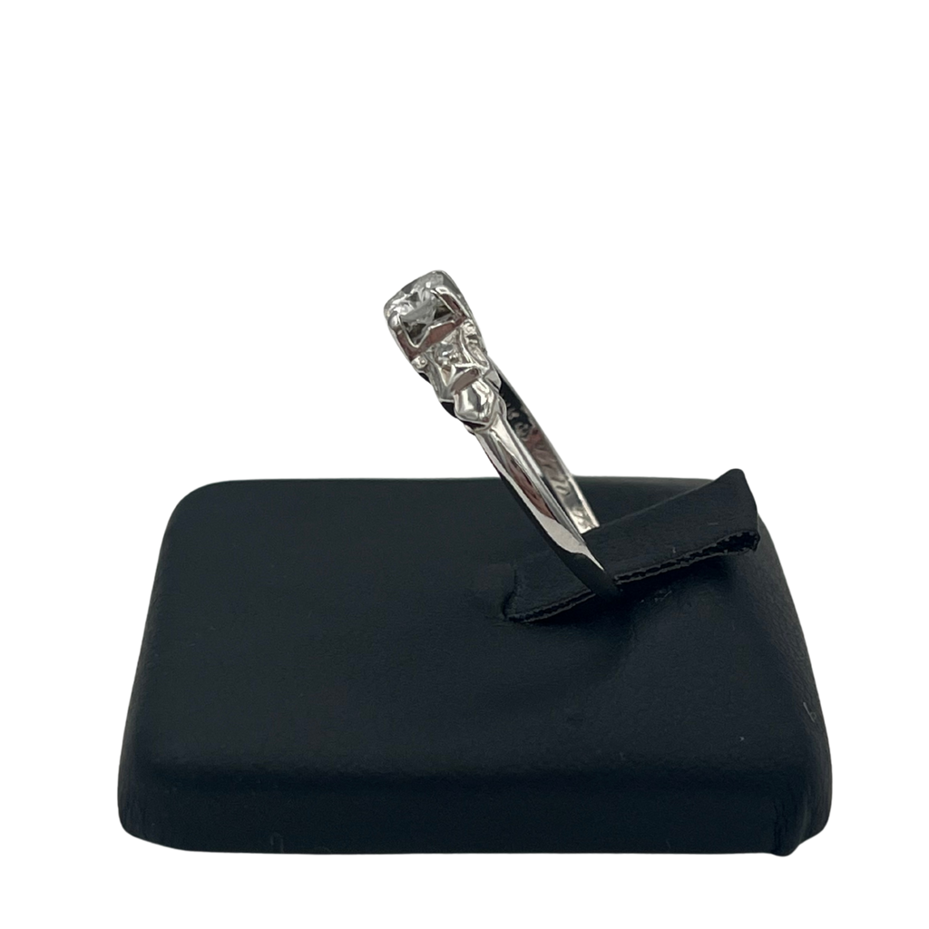 Vintage Three-Stone Diamond 18k White Gold Ring