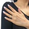 Secondary Stones: Two (2) pave set single cut diamonds measuring approximately 1.4 mm each in diameter. Estimated total weight is 0.03ct, estimated clarity is VVS, G/H colour.