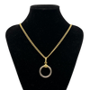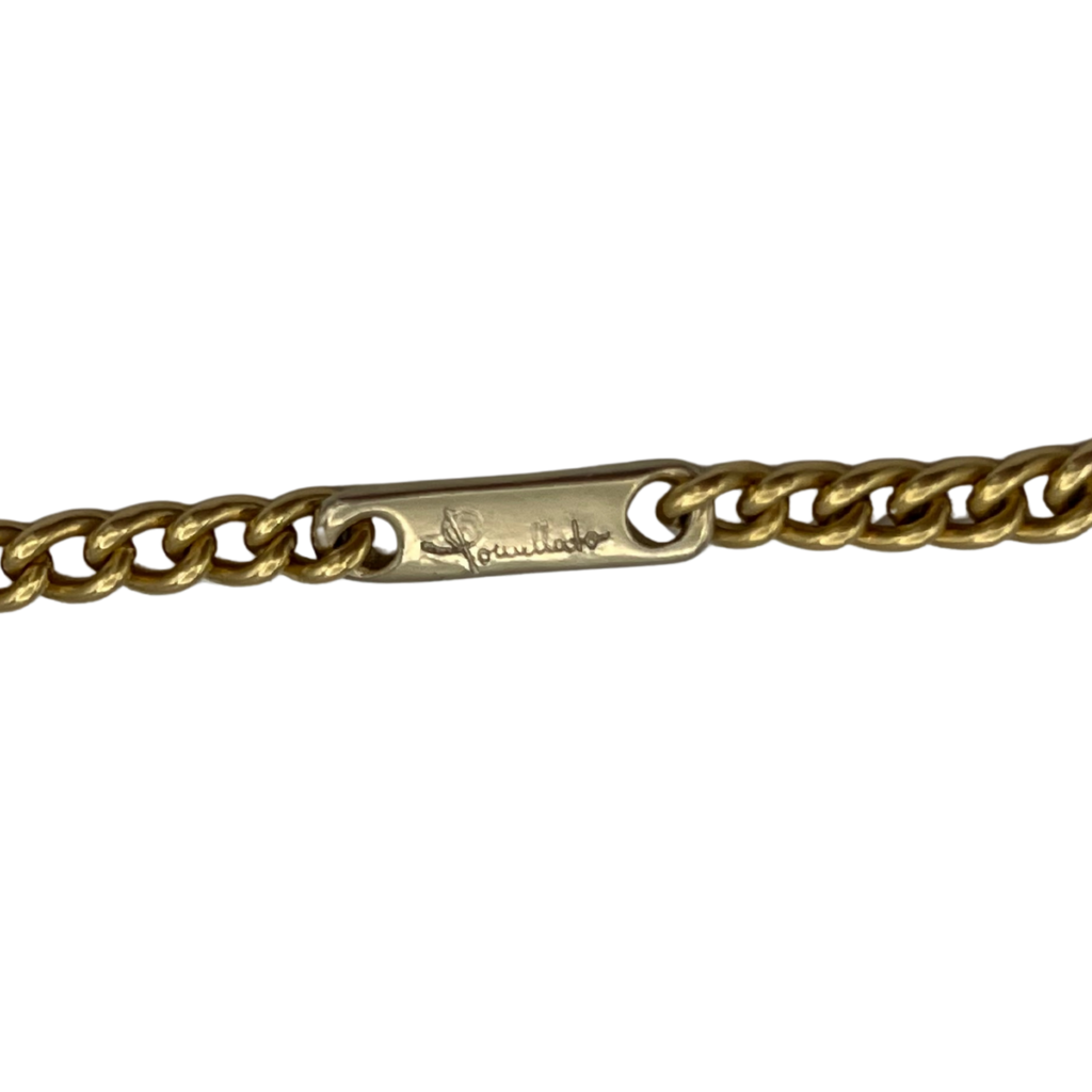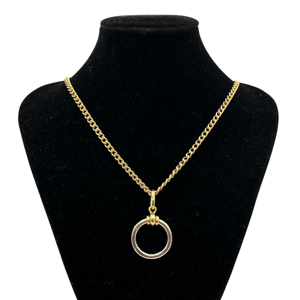 Vintage signed Pomellato chain necklace in 18k yellow and white gold with a fob clasp and scissor clasp. The necklace features a round hinged ring pendant, perfect alone or for adding extra charm accessories.