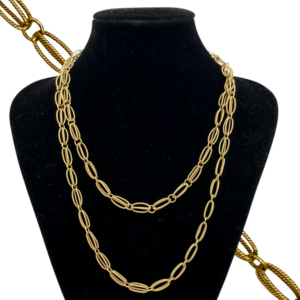 Vintage 18k Yellow Gold Textured Fancy Link Necklace