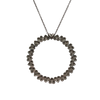 Vintage Birks circular pendant with bezel set diamonds (three in one setting) in an 18k white gold continuous heart motif on a white gold chain.