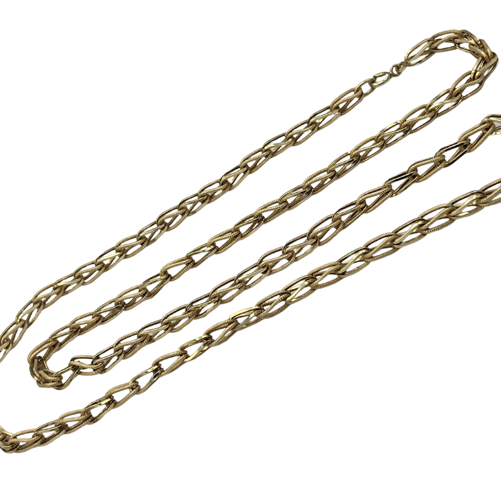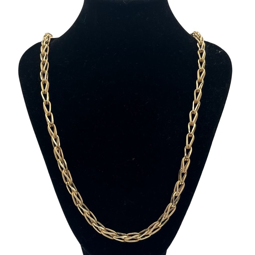 Vintage Italian 14k yellow gold necklace with alternating links of high polish and textured finishes.