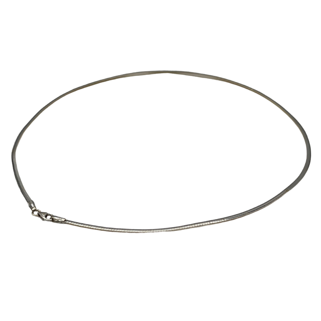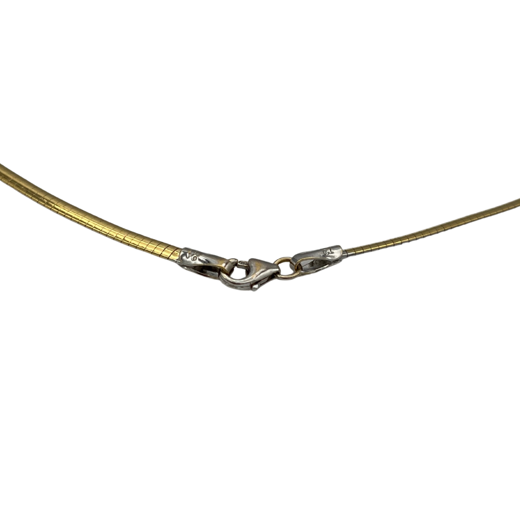 Stylish vintage Italian 2.0mm omega chain necklace in 18k yellow and white gold with a lobster clasp. This necklace is reversable and can worn with either the yellow gold or white gold side facing out.