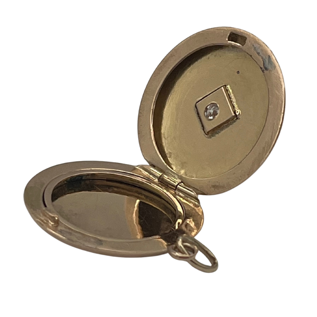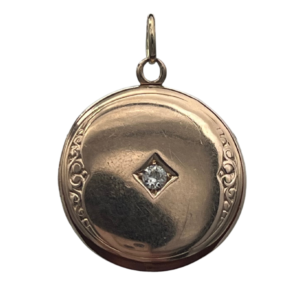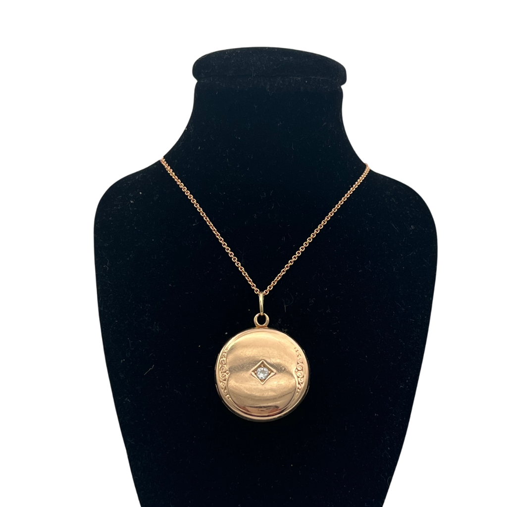 Antique Edwardian 14k Rose Gold and Diamond Round Locket c. 1900's