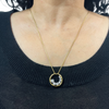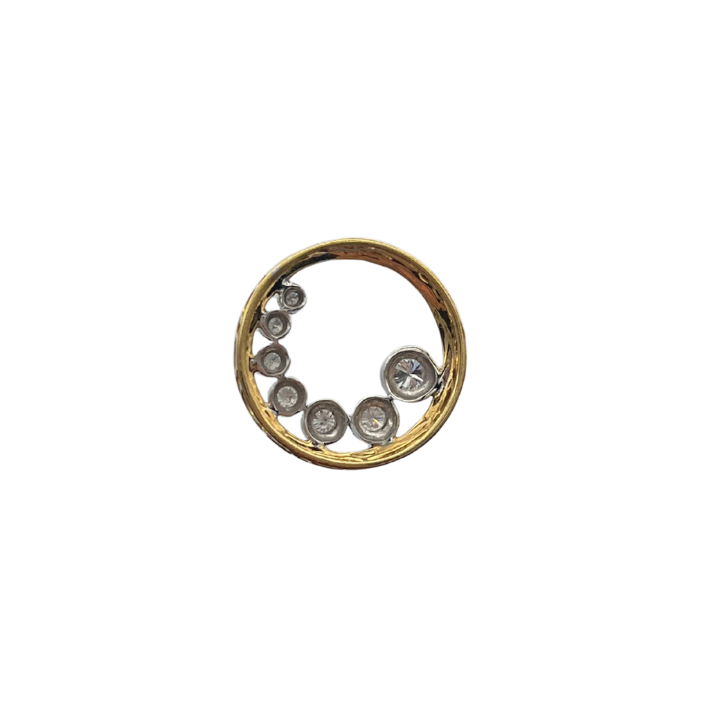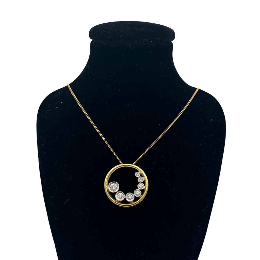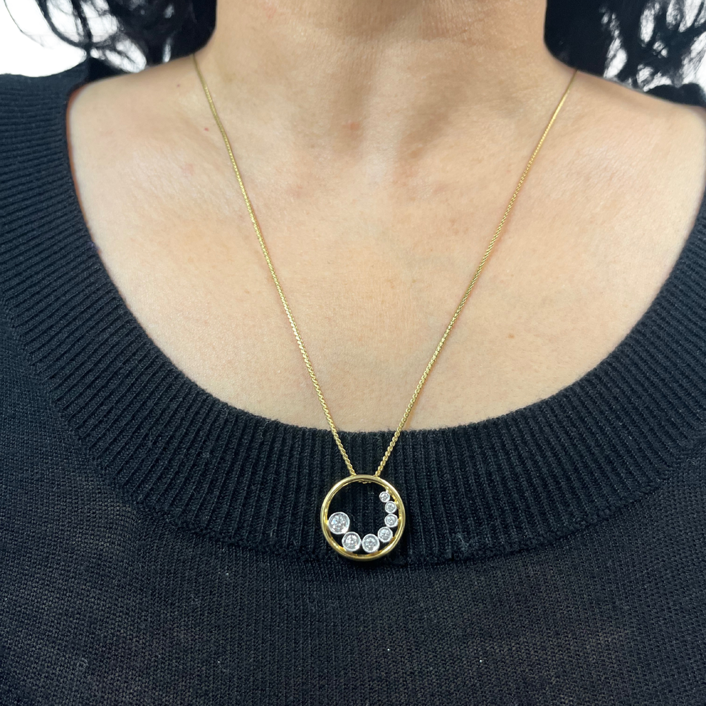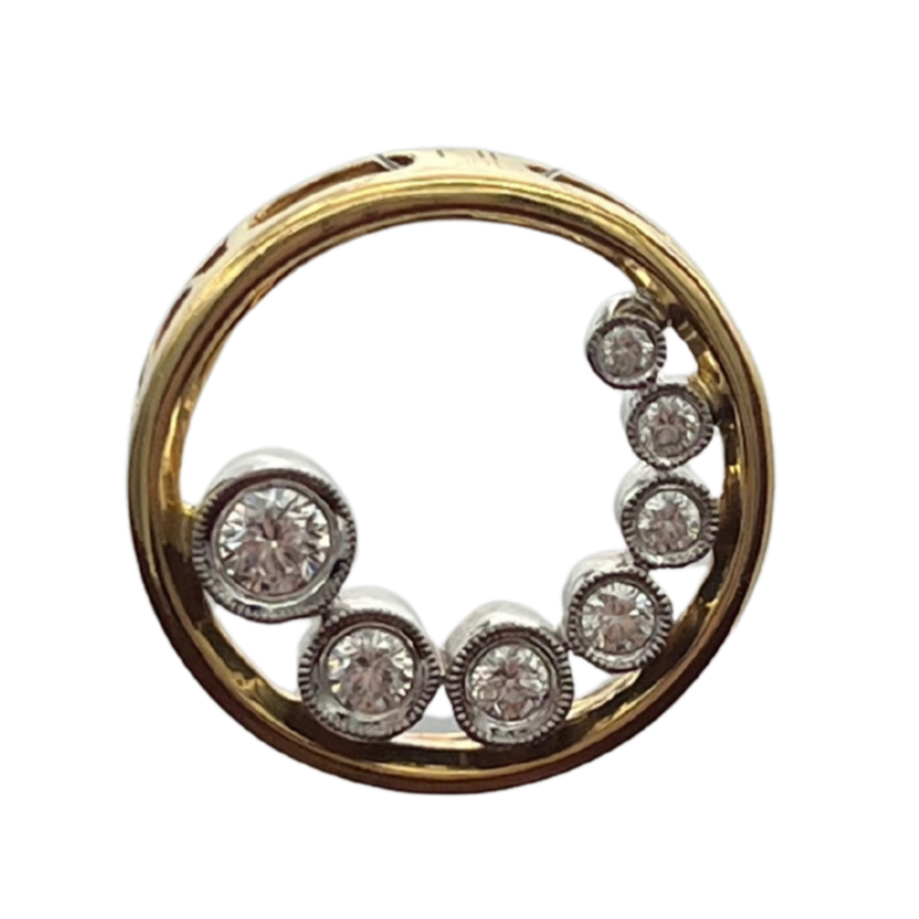 Vintage 18k yellow gold slider pendant with graduated round brilliant cut bezel set diamonds.