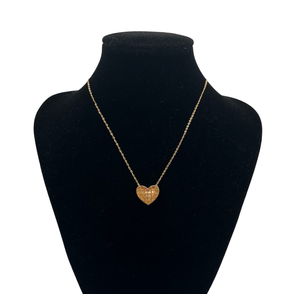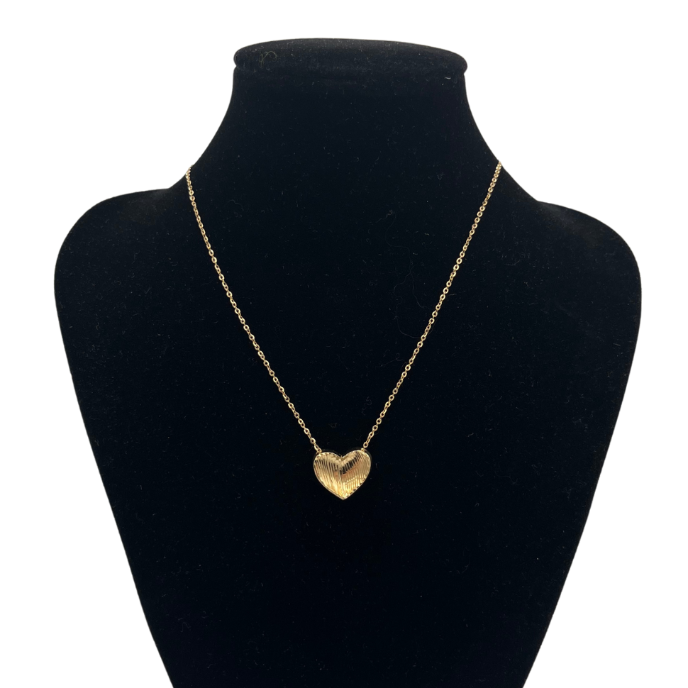 Adorable vintage sliding heart pendant with a concave brushed finish on one side, and waffle pattern on the other attached to a delicate 1mm oval link chain.