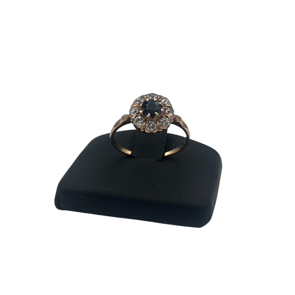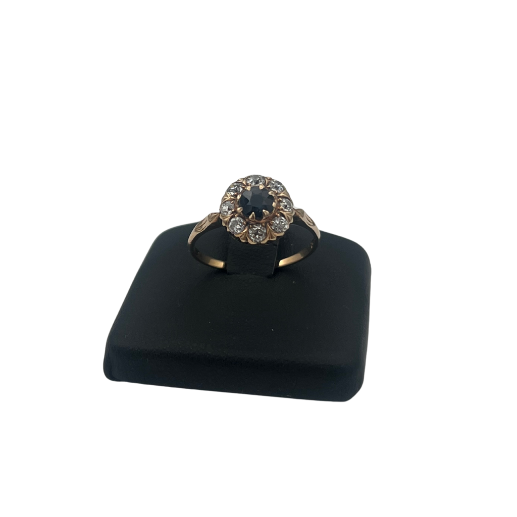 A beautiful antique sapphire ring with quality old cut diamonds set as a halo.