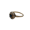 Sapphire : One (1) round faceted dark blue sapphire measuring approximately 5.0mm by 3.5mm. The colour is dark blue and the clarity is moderately included. There is a small natural cavity near one of the prongs. Slight abrasions are visible under magnification.