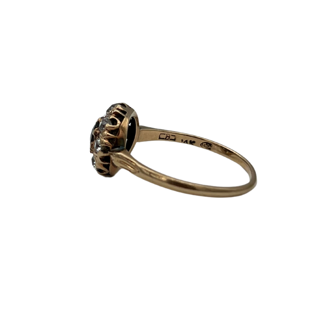 Diamonds : Eight (8) Old European/Old mine cut diamonds measuring approximately 2.5mm in diameter. The estimated clarity is VVS2-SI1 and the estimated colour is F/G. The total estimated diamond weight is 0.50ct. Two diamonds have very slight chips.