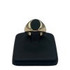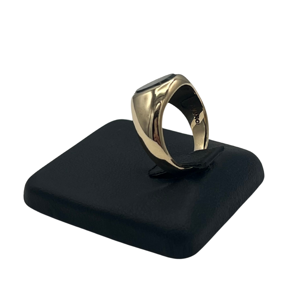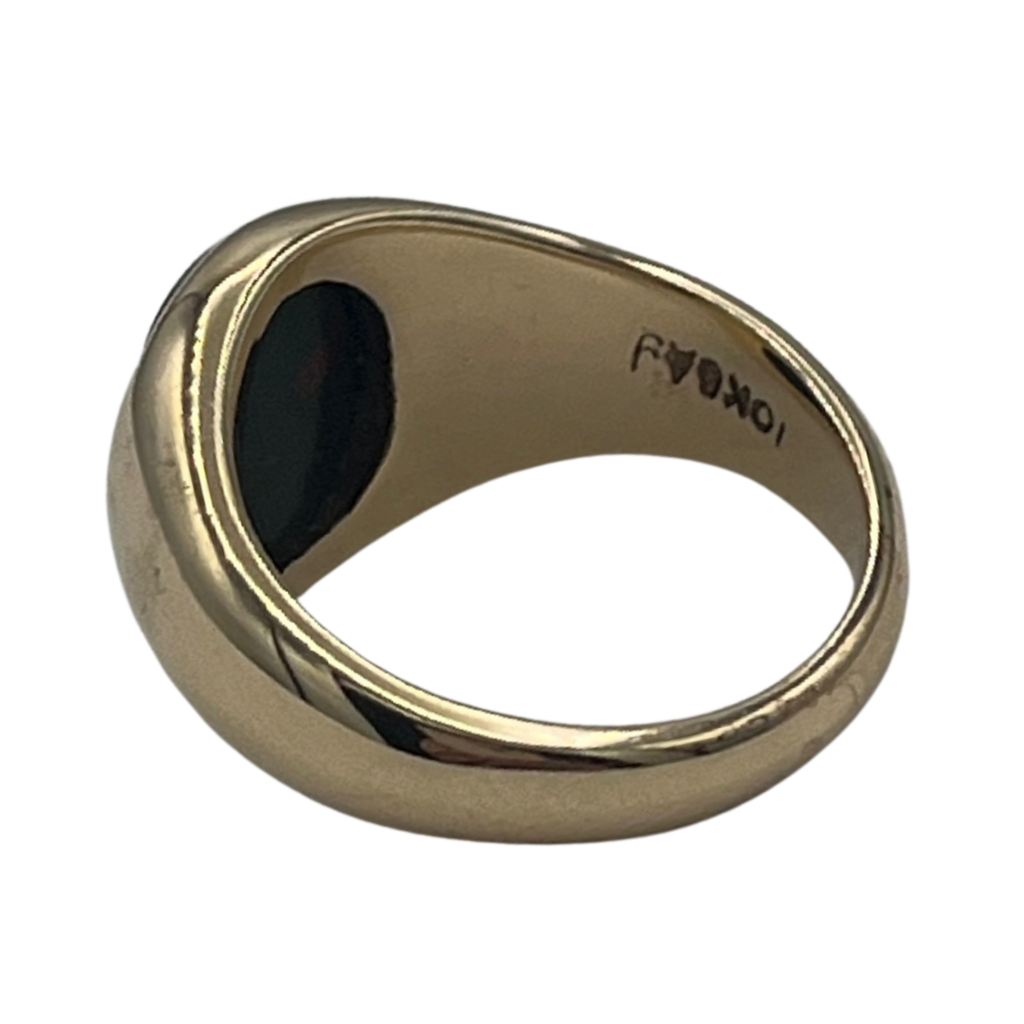 Vintage high polish 10k yellow gold signet ring featuring a flat oval polished bloodstone.
