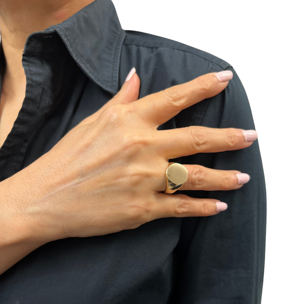 Vintage 10k Yellow Gold Signet Ring 16mm x 14mm Oval