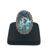 Aquamarine: One (1) prong set, oval faceted aquamarine with a loose weight of 18.34ct. Aquamarine has been repolished to remove surface scratches due to general wear and age of stone.