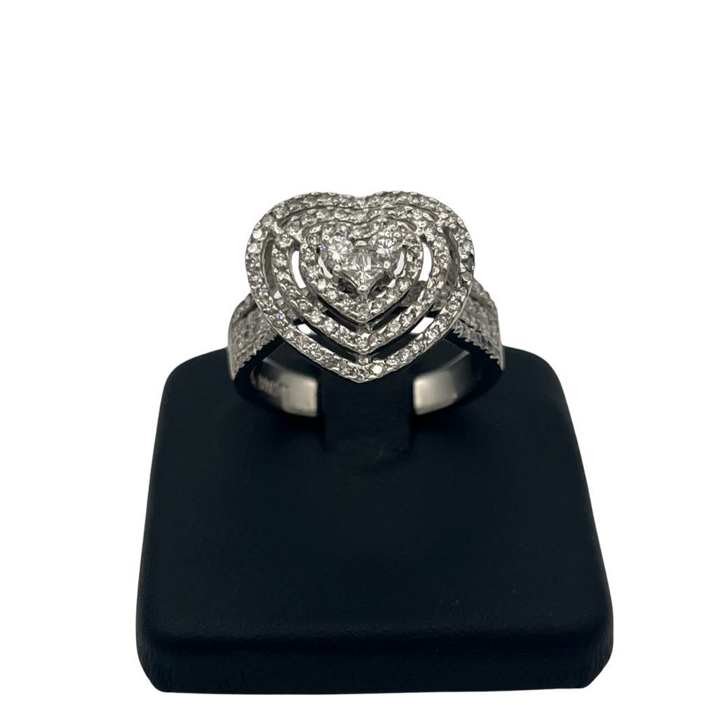 Vintage Birks diamond heart ring featuring concentric rows of pavé diamonds set in 18k white gold.