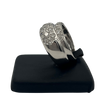 Vintage 18k white gold asymmetrical double band ring pavé set with diamonds.