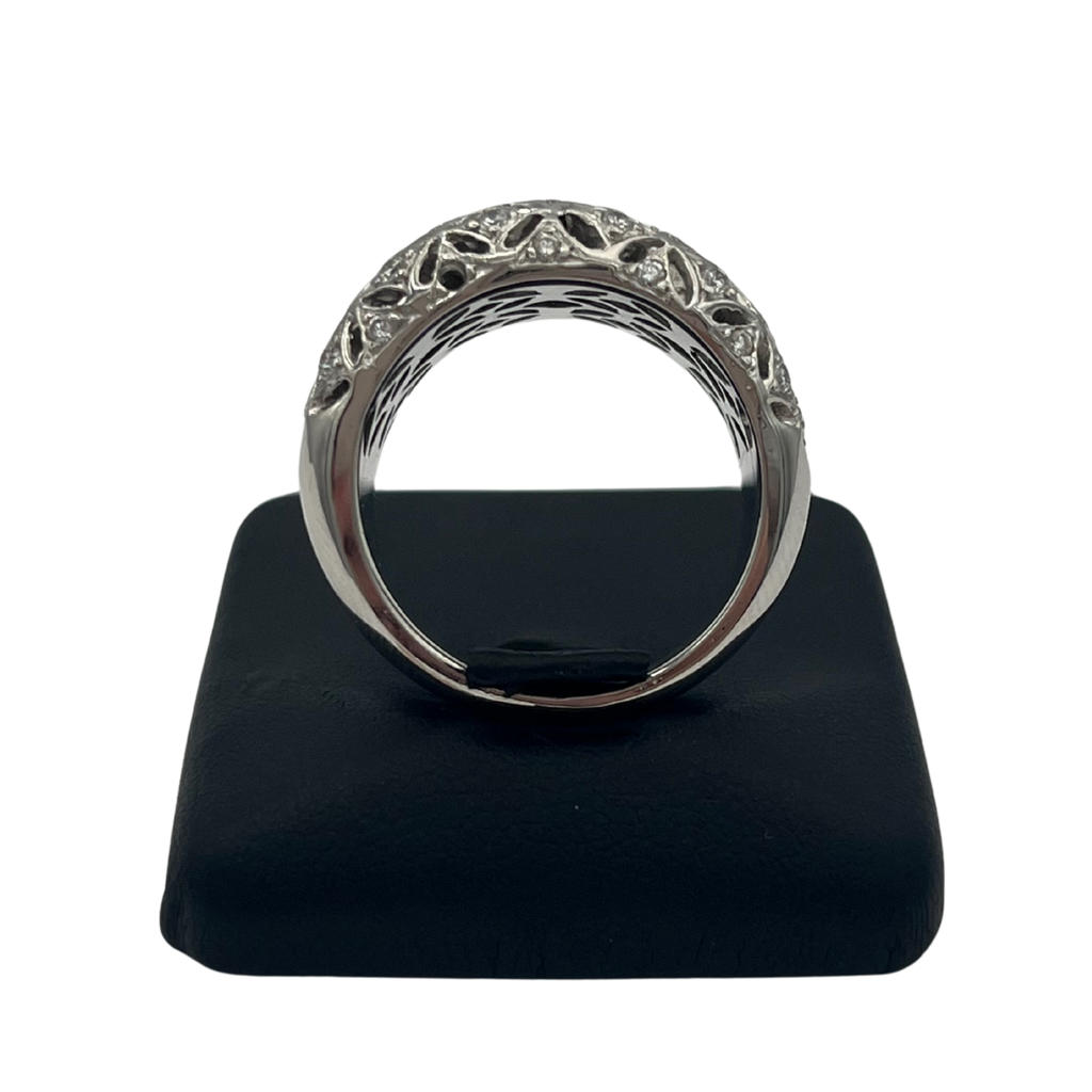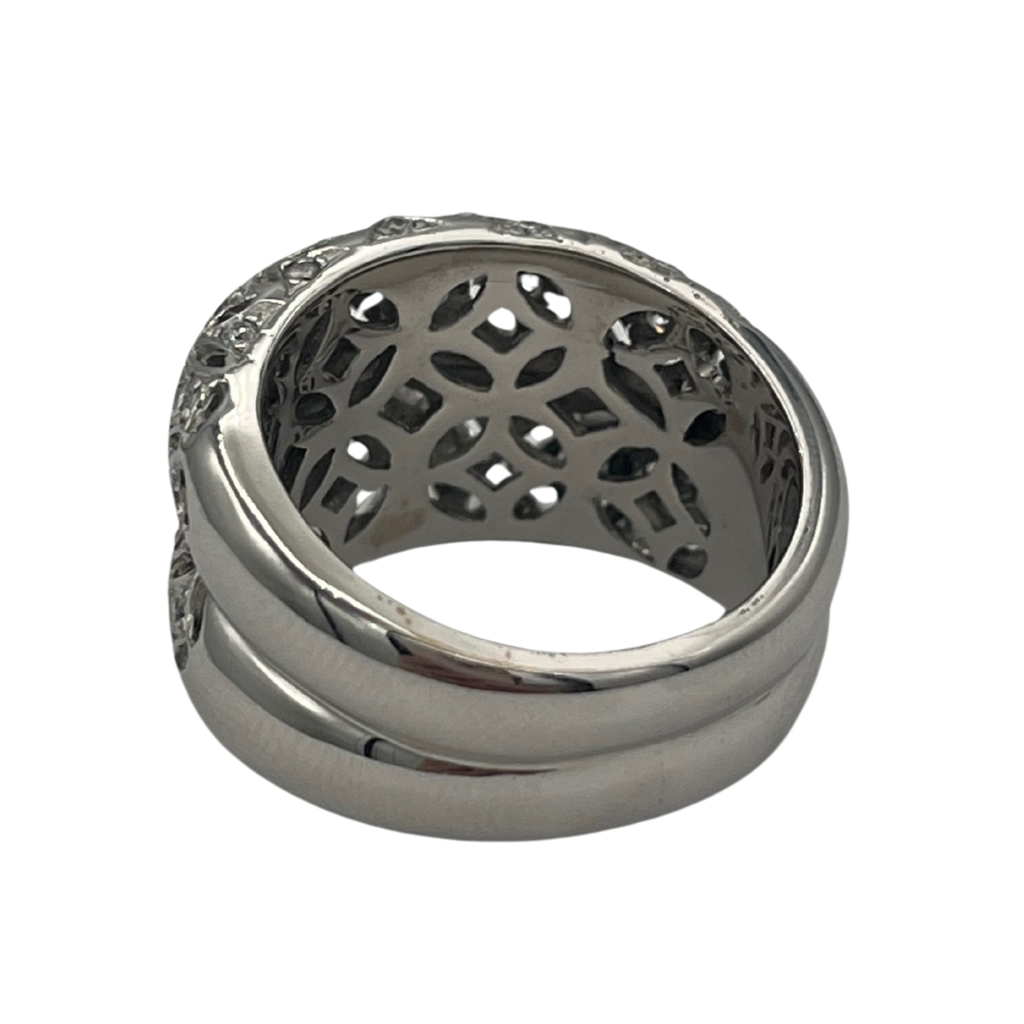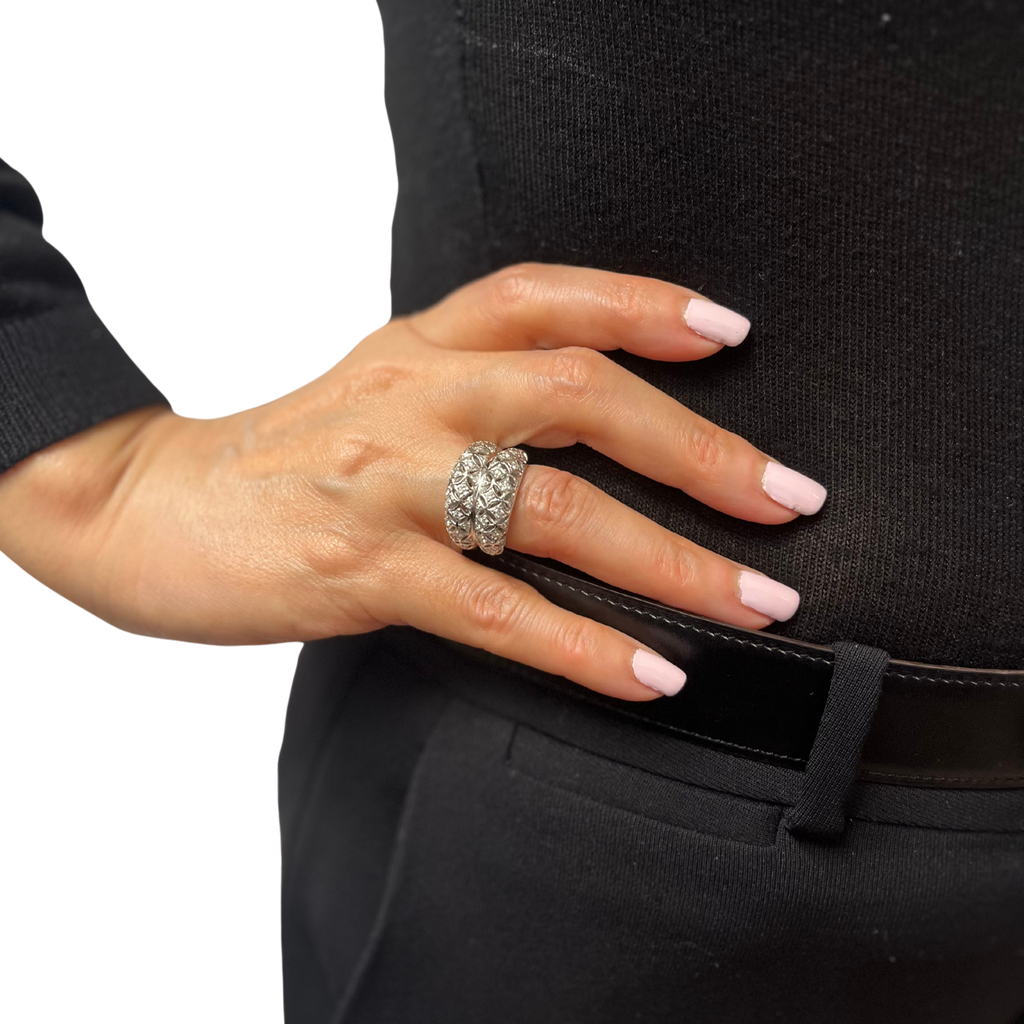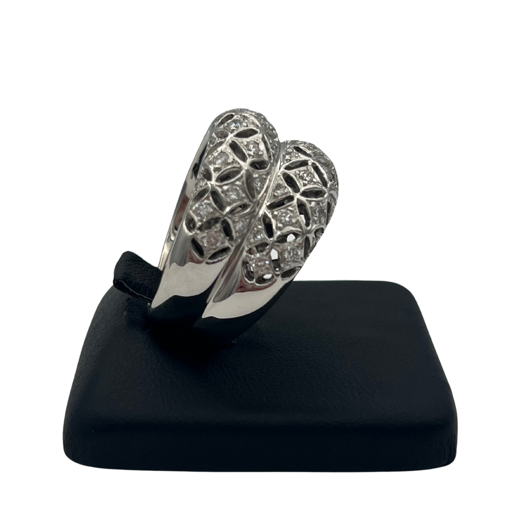 Vintage diamond and 18k white gold double-barrel double ring with a 'Florentine' open motif.