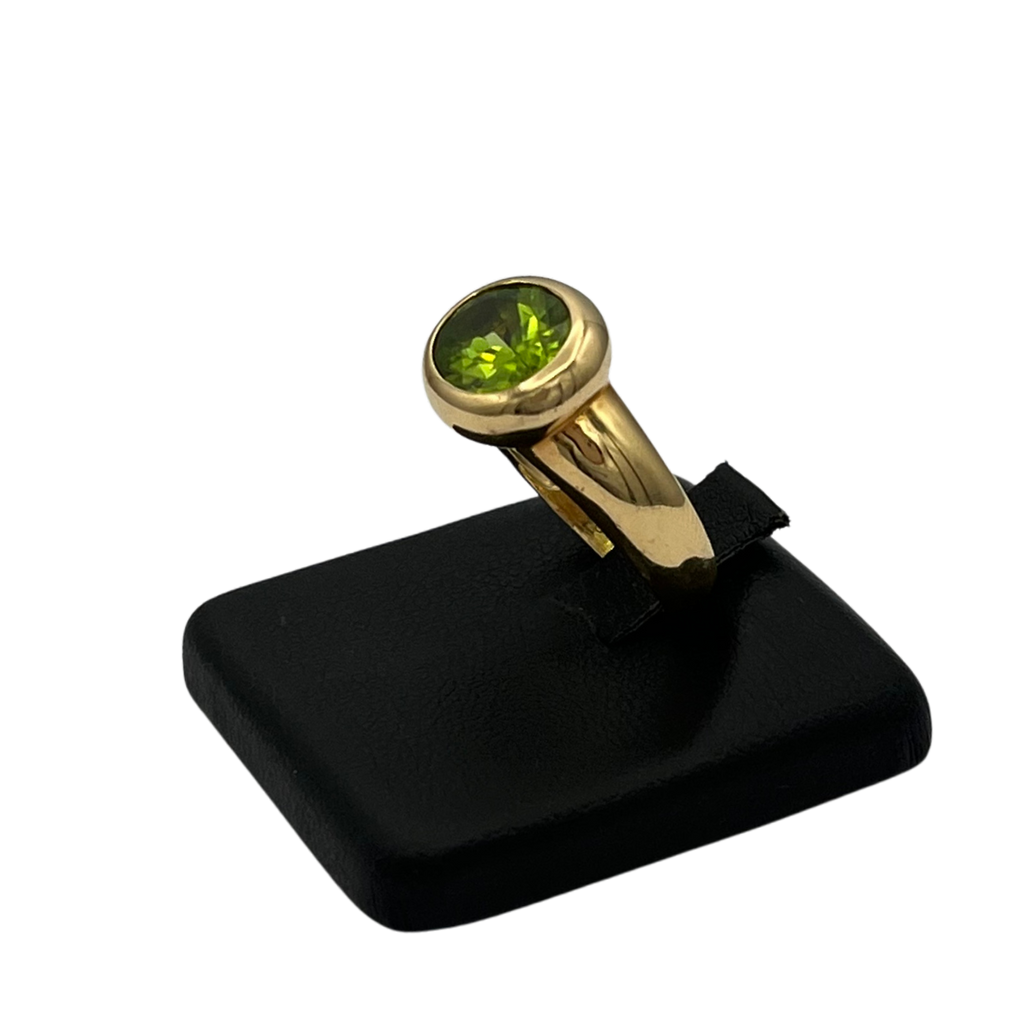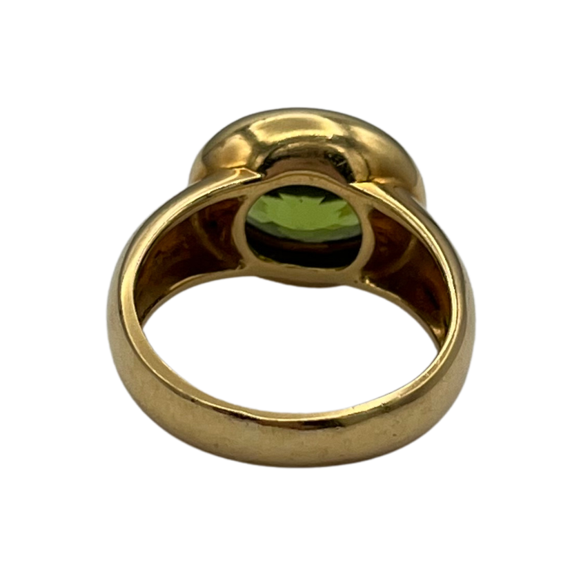 Peridot: One (1) bezel set, oval facet cut peridot stone measuring approximately 11.0mm x 9.0mm x 5.9mm. The estimated peridot weight is 3.7ct
