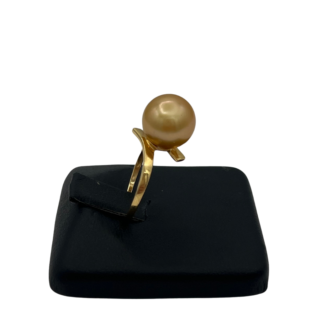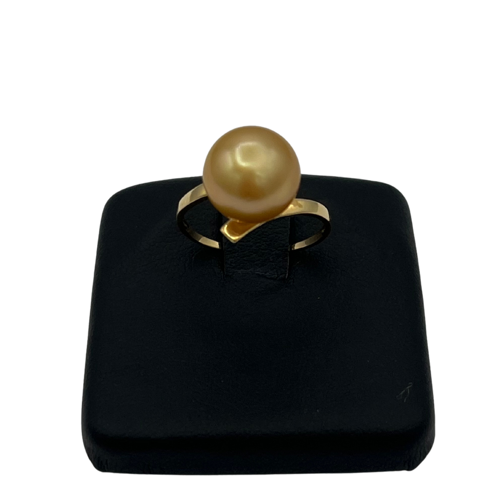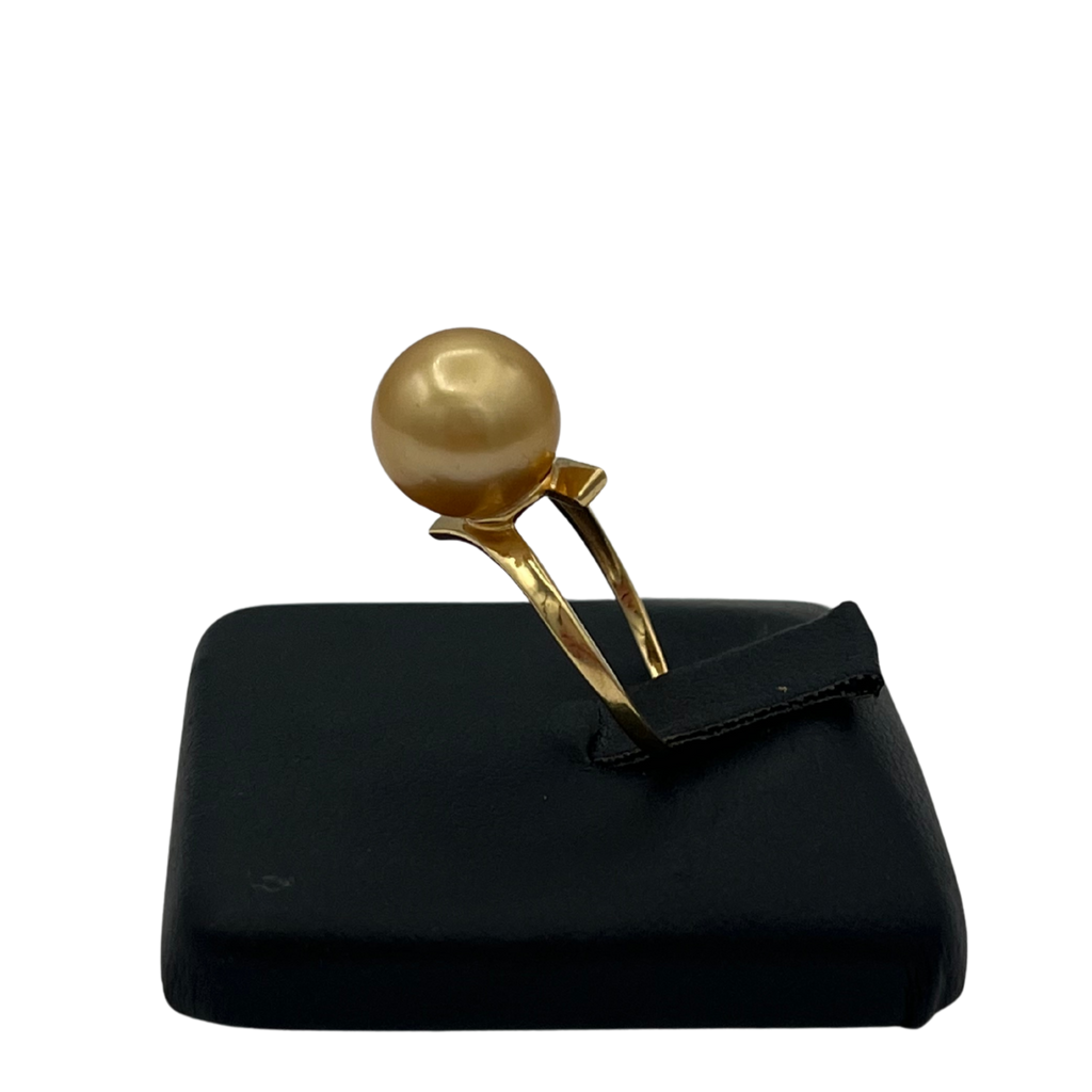 Pretty vintage ring with a golden south sea cultured pearl and 14k yellow gold band.